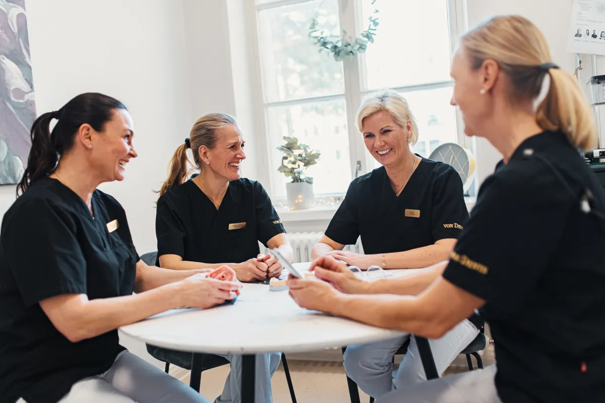 Turun Kupittaan Kurjenlinnassa sijaitsevassa von Dentsissä sinua hoitavat työhönsä sitoutuneet, lämminhenkiset ammattilaiset. Töitä tehdään aina tutun työparin kanssa, mikä tekee hoitokokemuksesta miellyttävän ja sujuvan. Olethan yhteydessä, kun haluat varata ajan tai tiedustella hammashoidon palveluistamme.